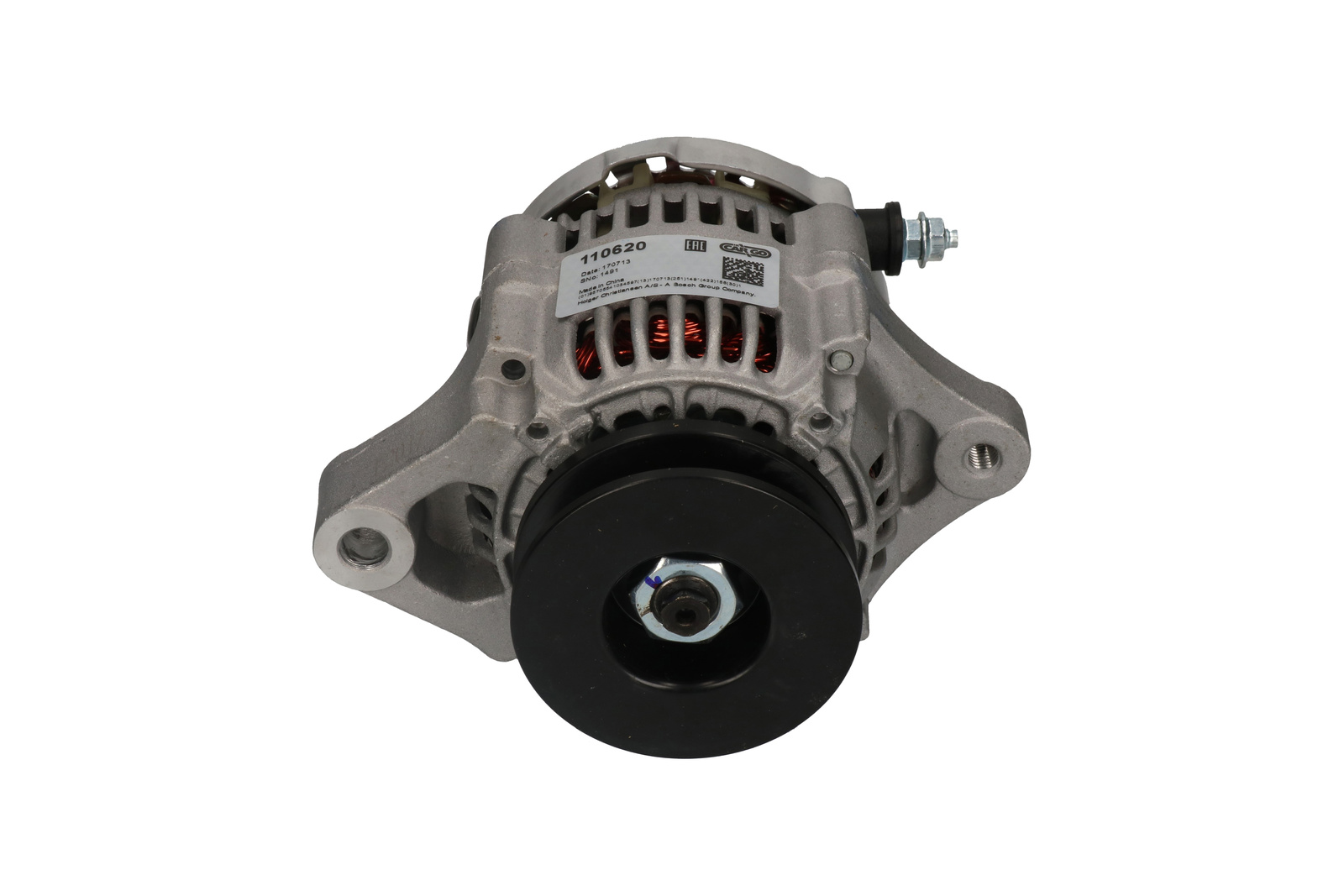 Volt 14, Amp. 35, Remskive P, Størrelse Holdearmshul 1 10.20, Remskivediameter 74.70, Prod. info BN, D+ størrelse Stik, D+ Position 60, Bredde - holdearm 23.50, Remskiveafstand 44.00, Servicerer Kubota, B+ M6, Radius 2 66.00, Kontrol diyotlari PL10, Radius 69.50, Rotation CR, Remstrammerhul 1 M8, Spor i remskive 1, Regulatortype IR, Relæ/kulholder plac. 50, B+ Placering 5, Remstrammerhul plac. 60, Totallængde 143.00