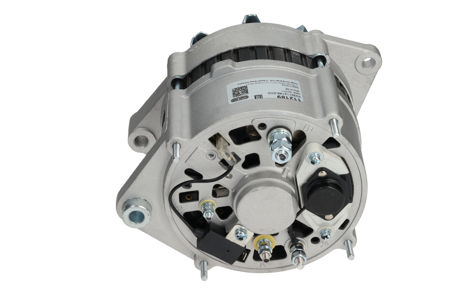 Dobbeltisoleret Ja, Terminal W, Volt 28, Amp. 80, Remskive Uden, W stiktype M5, Prod. info BN, Størrelse Bøjlehul - bag 10.30, D+ Position 30, Servicerer Renault VI, Afstand - ophæng 71.20, Radius 88.50, Remstrammerhul 1 8.50, Regulatortype IR, Størrelse Holdearmshul 1 10.50, Lampe type Aktiv, D+ størrelse M4, Bredde - holdearm 27.00, B+ M8x1.25, Blæser EF, Radius 2 92.50, Rotation CR, Relæ/kulholder plac. 60, B+ Placering 48, Remstrammerhul plac. 3, Totallængde 185.50