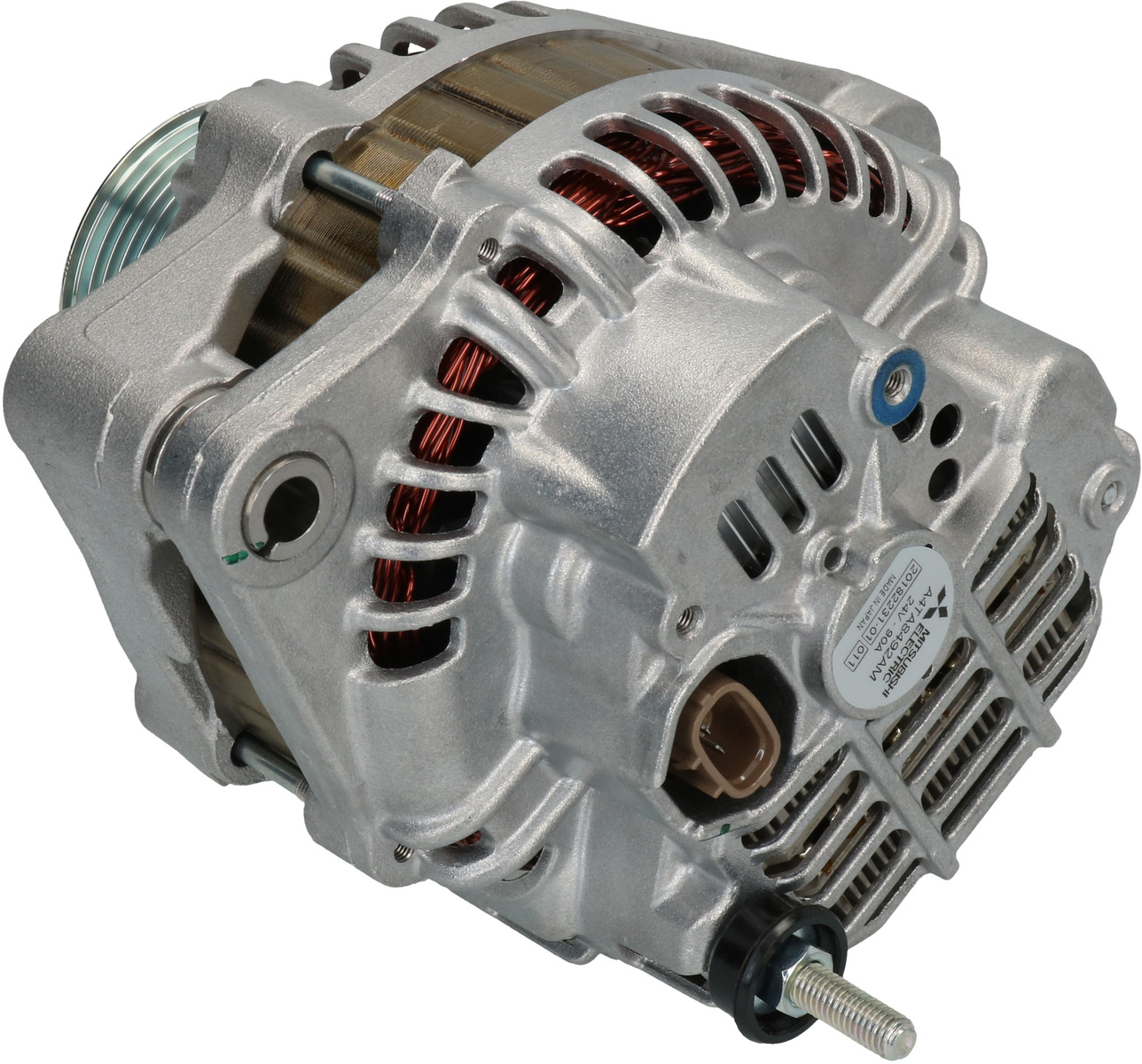 Volt 28, Amp. 90, Remskive SP, Remskivediameter 69.00, Prod. info BN / OE, D+ Position 20, Remskiveafstand 90.00, Kilde Mitsubishi, Radius 90.00, Remstrammerhul 1 M8, Spor i remskive 12, Regulatortype IR, Størrelse Holdearmshul 1 10.50, D+ størrelse Stik, Bredde - holdearm 58.00, B+ M8x1.25, Radius 2 90.00, Kontrol diyotlari PL42, Rotation CR, Relæ/kulholder plac. 35, B+ Placering 15, Remstrammerhul plac. 7, Totallængde 204.00