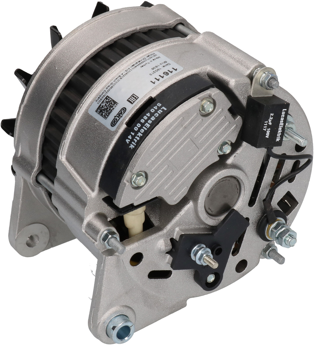 Terminal W, Volt 14, Amp. 80, Remskive Uden, W stiktype 5.00, Prod. info BN / OE, Størrelse Bøjlehul - bag 8.00, D+ Position 20, Kilde Lucas, Afstand - ophæng 83.00, Radius 85.00, Remstrammerhul 1 M8, Regulatortype IR, Størrelse Holdearmshul 1 8.00, D+ størrelse M4, Bredde - holdearm 11.00, B+ M5/13.00, Blæser EF, Radius 2 85.00, Rotation CR, B+ Placering 10, Remstrammerhul plac. 50, Totallængde 168.00, Bemærkning Aksel: 17.00 mm.