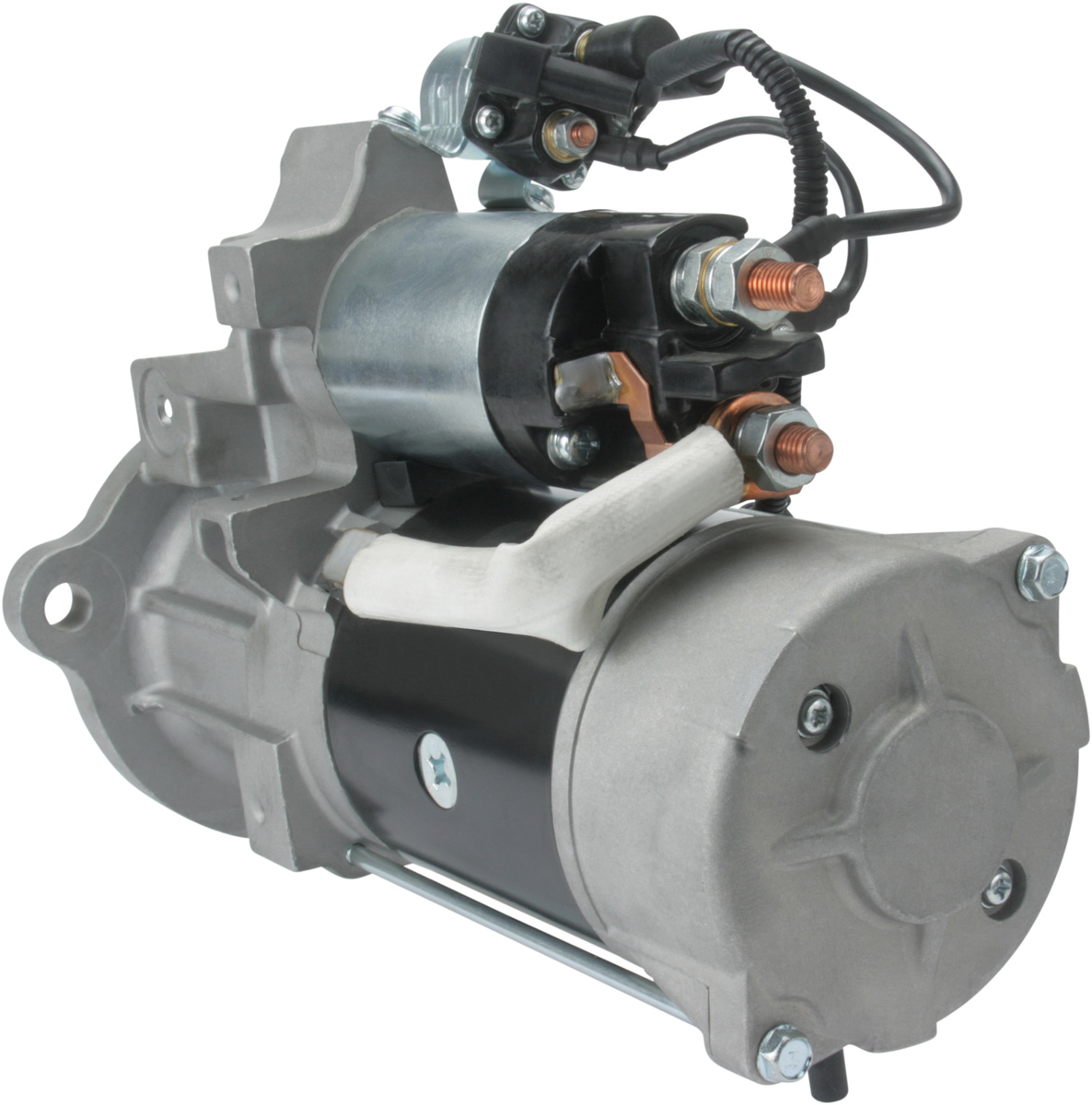 kW 7.0, Voltage 24, No./mount. holes 3 (0), Mounting Hole 2 14.00, Rear Distance 289.50, Gear type GR, Prod. info BN, Front Distance 57.00, Distance 3 126.50, Drive Distance 47.50, No./teeth 12, Distance 2 126.50, B+ M10, Terminal 50 Plug, Mounting Flange 92.00, Distance 126.50, Mounting Hole 3 14.00, Rotation CW, Mounting Hole 1 14.00, Amount of Mounting Holes 3 (0), Total Length 350.00